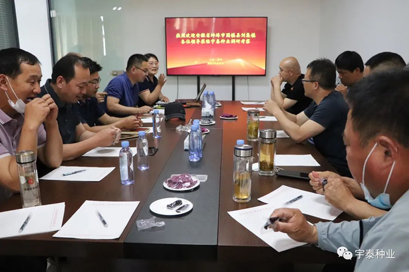 2022年5月21日,安徽省蚌埠市固鎮(zhèn)縣劉集鎮(zhèn)人大主席陳劍帶領(lǐng)劉集鎮(zhèn)多位村干部一行蒞臨山東宇泰生物種業(yè)有限公司調(diào)研考察,泰安農(nóng)科院甘薯所孫哲所長,宇泰種業(yè)財務(wù)部王峰經(jīng)理、企業(yè)發(fā)展部陳大印經(jīng)理、生產(chǎn)基地負責人張金萍經(jīng)理全程陪同。