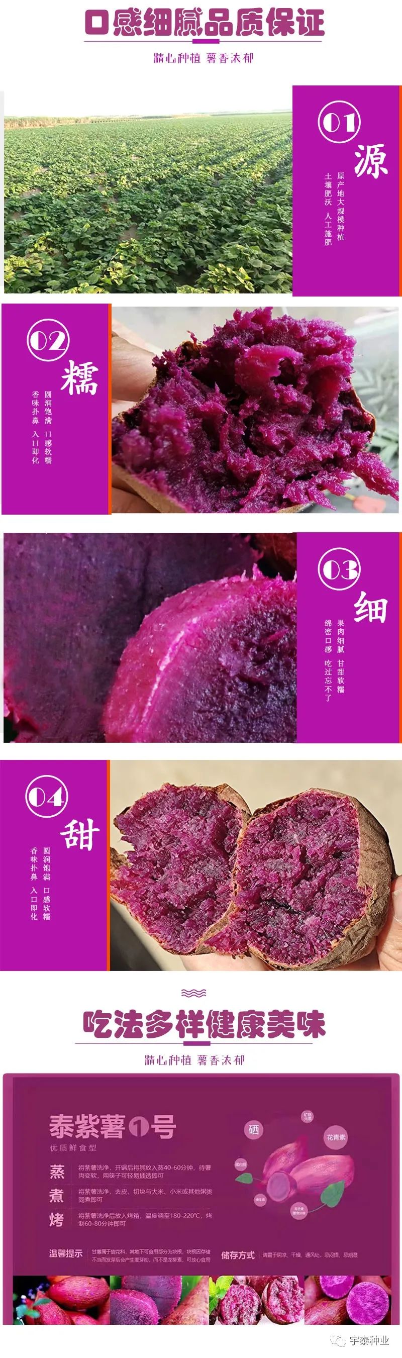 1、蒸:將紫薯洗凈,放入蒸鍋,開鍋后蒸40-60分鐘,待薯肉變軟,用筷子可輕易插透即可